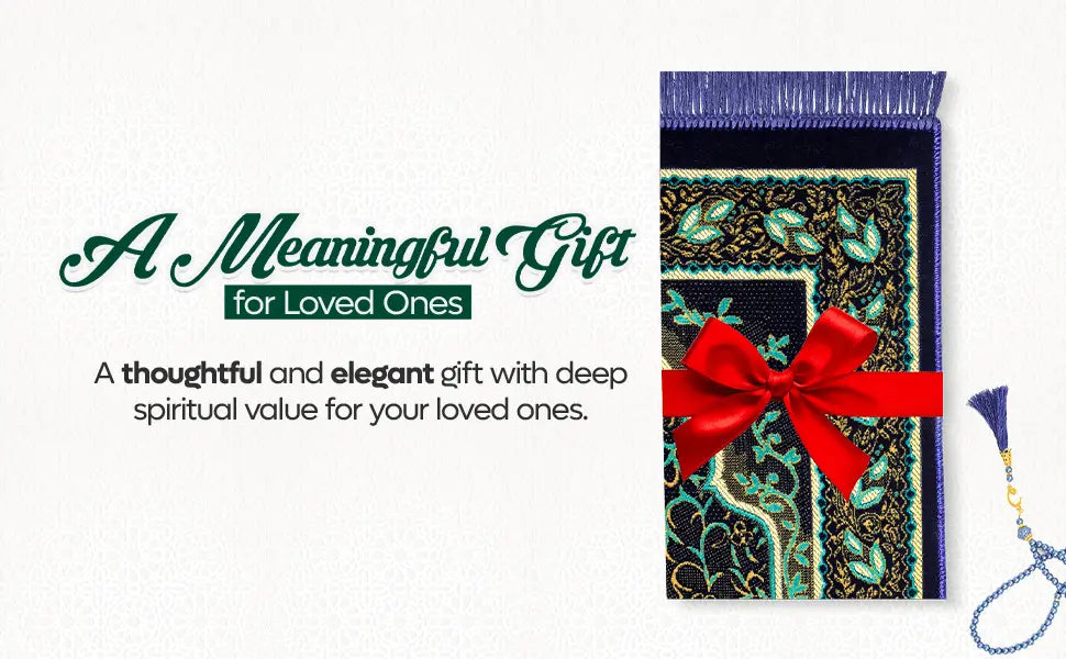 This Turkish Muslim prayer rug makes a meaningful gift for Ramadan, Eid, Hajj/Umrah, or a new home prayer space, suitable for men, women, and kids.